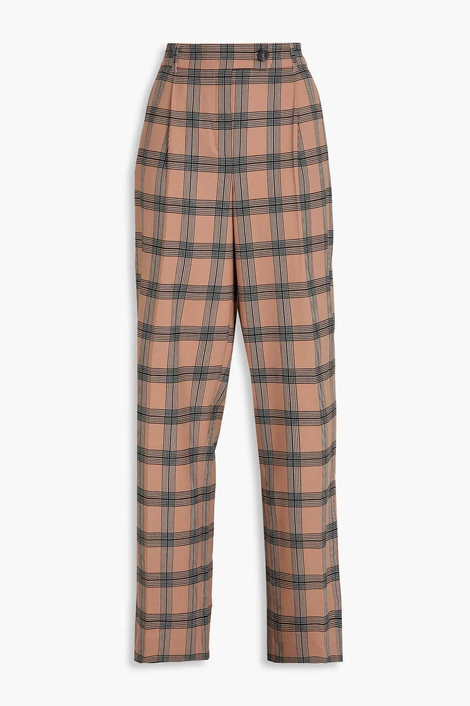 Straight-leg pants checked twill pleated front slant pockets back welt pockets high-rise cut mid-weight, non-stretchy fabric dry clean imported Looking for a really great addition to your wardrobe? Zimmermann's straight-leg pants are made from twill with a chic checked pattern that elevates any outfit. Wear them with a sweater or a blazer. 51% Polyester 44% Wool 5% Elastane Product Code 1647597358962120
