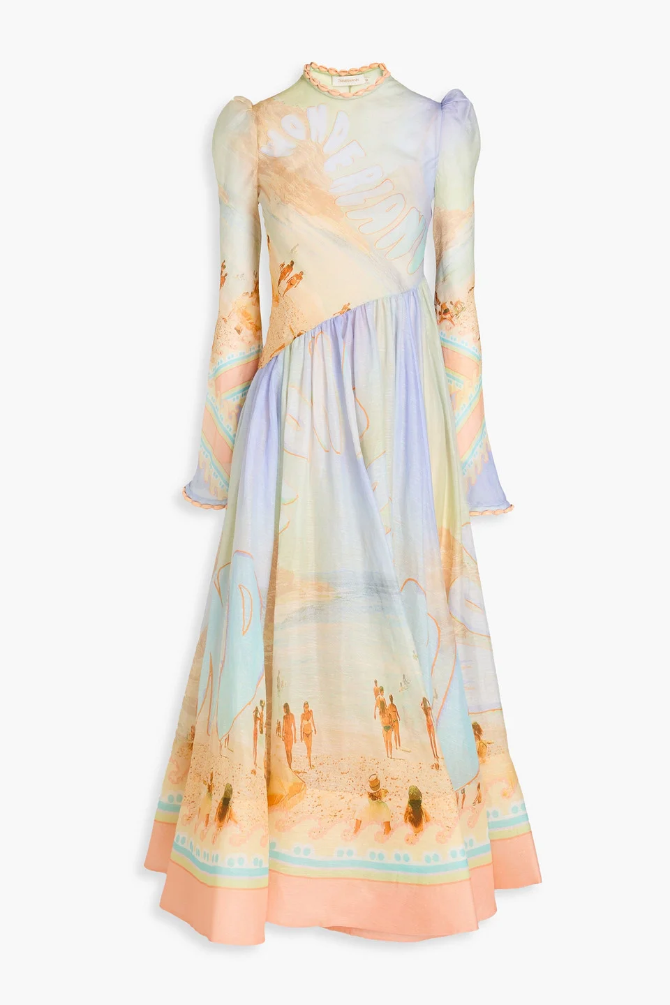 Dress printed gauze linen and silk-blend shell-embellished puffed sleeves zip fastening along shoulder slip to line lightweight, non-stretchy fabric dry clean imported 52% Linen 48% Silk Product Code 1647597342445447