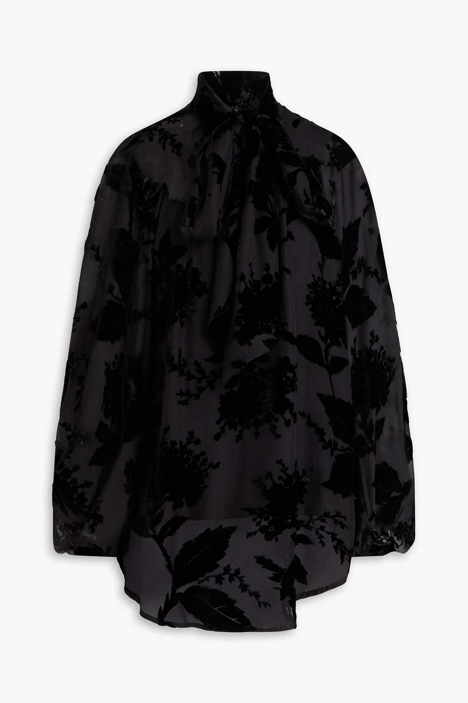 Pussy-bow devoré-velvet blouse