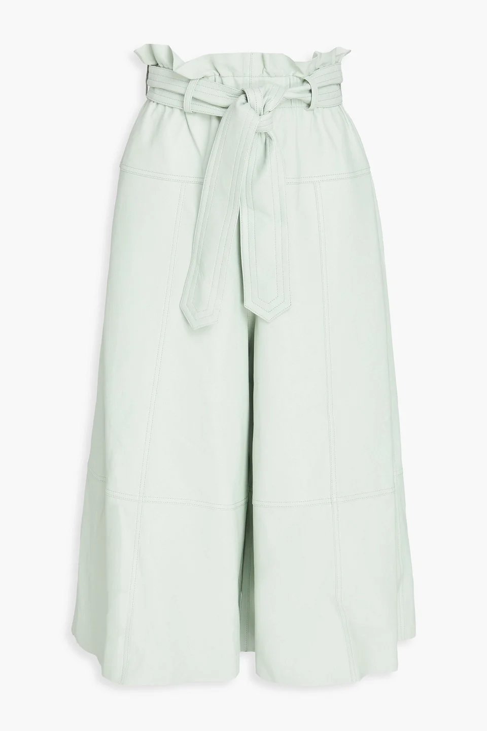 Culottes leather unfinished trims ruffled trims detachable waist tie side slit pockets elasticated waist high-rise cut pull on supple, non-stretchy leather specialist clean imported 100% Lambskin Product Code 46376663163007928