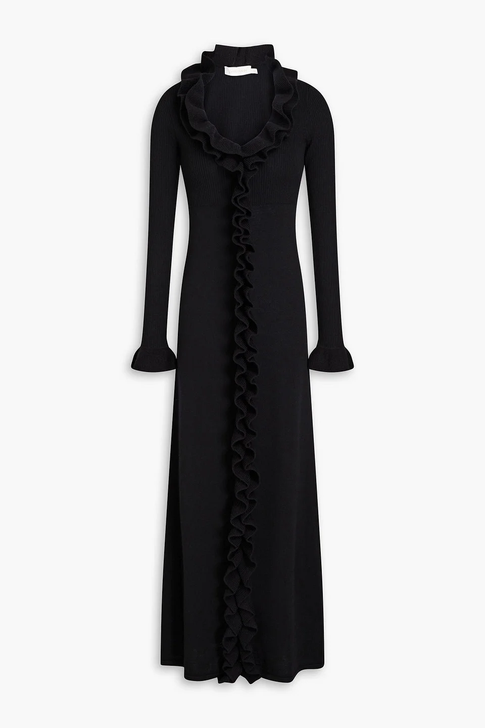 Dress wool ribbed trims ruffled slips on mid-weight knit dry clean imported Zimmermann has a way of making the classic sweater dress feel so romantic. This stunning black maxi is made from soft wool with ruffled trims. Wear it with flats or boots, depending on your plans. 100% Wool Product Code 1647597358955580
