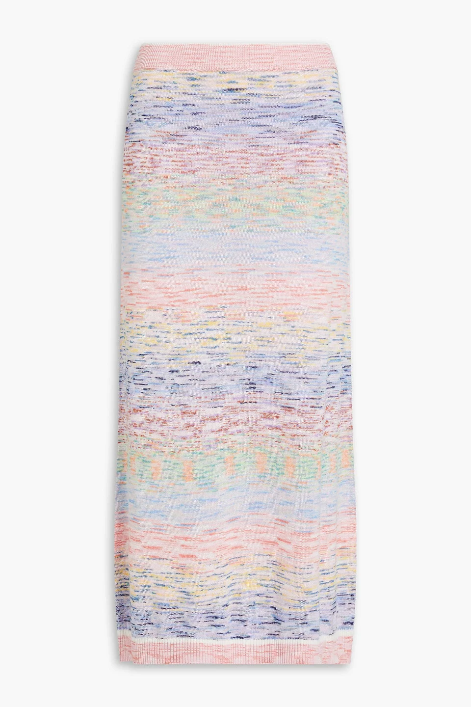Skirt space-dyed cotton-blend ribbed trims elasticated waist mid-weight knit hand wash or dry clean imported Looking for a really great addition to your wardrobe? Zimmermann's midi skirt is made from a soft cotton-blend with a stunning space-dyed effect that adds a unique touch. Just add a tucked-in top and mules for a chic day out. 64% Cotton 36% Viscose Product Code 1647597351152569