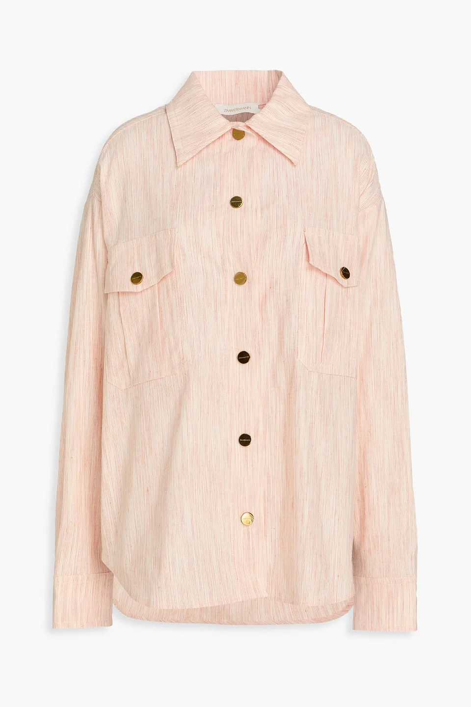 Shirt striped linen-blend snap-fastening cuffs breast pockets side slits snap fastenings through front mid-weight, non-stretchy fabric dry clean imported 55% Linen 43% Cotton 2% Elastane Product Code 46376663163009285