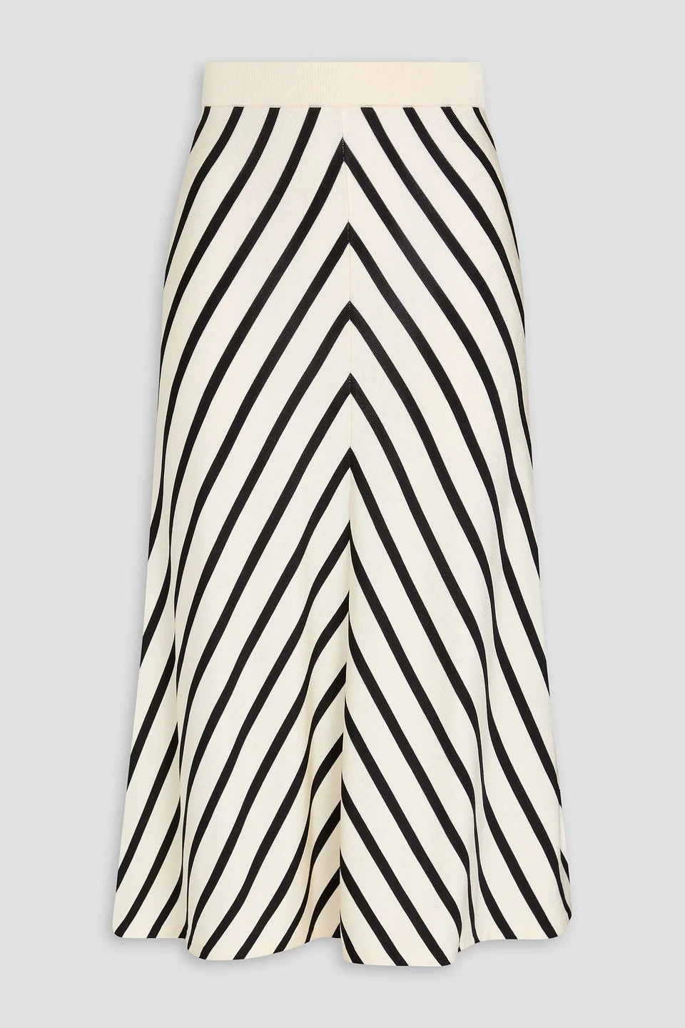 Striped stretch-knit midi skirt