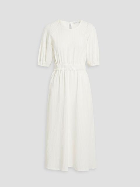 Off-the-shoulder ruffled plissé-georgette and crepe gown