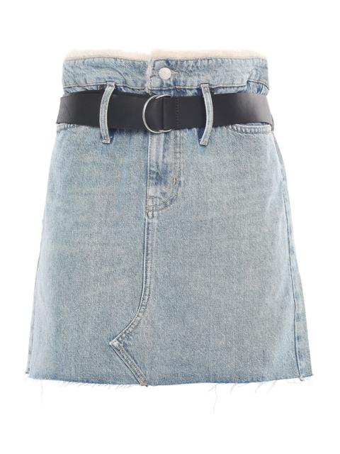 Icons shearling-trimmed belted denim mini skirt