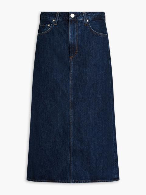 Low Slung denim midi skirt