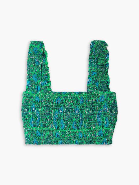 Tanya cropped shirred printed cotton-poplin top
