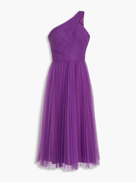 One-shoulder pleated tulle midi dress