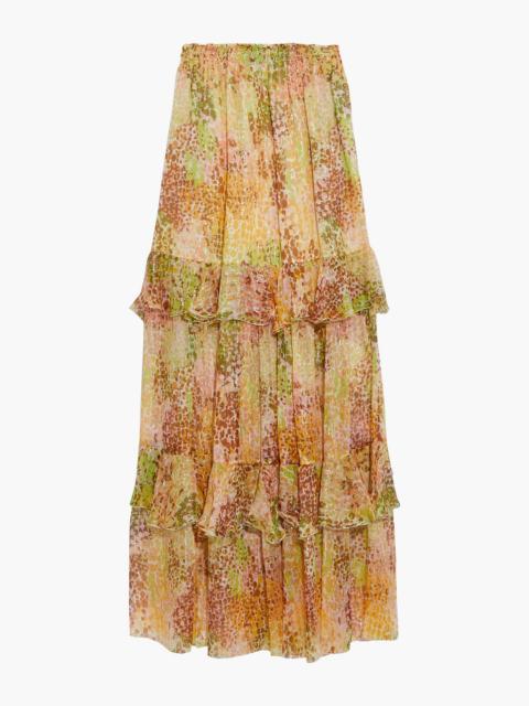 Tiered metallic printed silk-blend crepon maxi skirt