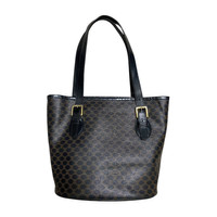 Celine Macadam Blason PVC Leather Tote Bag Black Brown