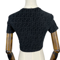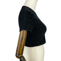 Authentic Vintage Fendi Mare Zucca Monogram Crop Top Elevate your vintage collection with this iconic Fendi Roma piece. Featuring the timeless "FF" Zucca monogram embossed in a luxurious, soft terry cloth/velvet texture. This cropped silhouette is perfect for high-waisted denim or a sleek mini skirt, offering that quintessential 90s/Y2K high-fashion aesthetic. • Brand: Fendi (Fendi Mare line) • Pattern: Zucca Monogram • Color: Jet Black • Material: 80% Cotton, 20% Elastane (High-quality stretch terry) • Origin: Made in Italy • Condition: Excellent vintage condition. Please see photos for details on fabric texture and labels. Measurements (Laid Flat): • Pit to Pit (P): 14.5" • Length (L): 14" • Shoulders (S): 13.5" • Sleeve Length (SL): 6" • Size Tag: IT 42 (Fits like a modern US Small due to crop and stretch) SKU : MIX46