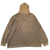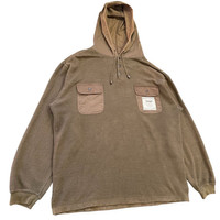 About the Designer Levi Strauss & Co. is an iconic American clothing company, universally recognized for inventing the blue jean in 1873. The garment features the classic "Two Horse Brand" trademark patch, which signifies "Genuine Quality" and has been used since 1886 to help identify their distinctive products. This hoodie represents a more casual, textured offering from the brand, distinct from their standard denim line. Description This is a unique, cozy, vintage Levi's pullover hoodie featuring a highly textured, fuzzy fabric, likely a heavy chenille or terry knit. The earthy tone and relaxed fit give it a great vintage, workwear-inspired feel. • Brand: Levi's (The Two Horse Brand is Genuine Quality) • Style: Pullover Hoodie/Sweatshirt. • Fabric: Highly textured, soft knit (Chenille/Terry style). • Color: Brown/Earthy Khaki Tone. • Design Details: • Three-button placket closure featuring embossed Levi's metal buttons. • Two contrasting flap chest pockets, one featuring the classic "World's Finest" Two Horse Brand patch. • Contrasting fabric lining inside the hood. • Drawstring hood adjustment. • Material Composition: 95% Cotton, 5% Polyester. • Manufacturing: Made in Saipan of Imported (USA) Fabric. • Size Tag: L (Large). • RN/WPL: WPL 423. Measurements : The garment is tagged size Large (L). Please use the provided measurements below to ensure the best fit, as vintage sizing may differ from modern standards. P2P (Pit-to-Pit) 29inches L (Length) 32inches SL (Sleeve Length) 26.5inches SKU : MIX44