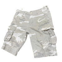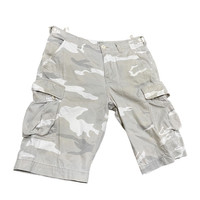 About the Designer Avirex was founded in 1975 and originally became famous for its high-quality military flight jackets and apparel, often supplying the US Air Force. In the 1990s and early 2000s, the brand became a staple in hip-hop fashion and streetwear. The tags in these shorts indicate they were manufactured/distributed by Ueno Shokai in Japan, a licensee known for maintaining superior construction and authentic military detailing compared to standard commercial releases. Vintage Avirex LTD Military-Style Cargo Shorts Up for sale is a pair of authentic Avirex LTD cargo shorts featuring a rare "Snow Camo" pattern. These shorts are heavily detailed with a tactical aesthetic, including multiple utility pockets and adjustable side waist tabs for a custom fit. Made from durable 100% cotton canvas, these were produced by the renowned Japanese distributor Ueno Shokai. • Brand: Avirex LTD • Pattern: White/Grey Camouflage (Snow Camo) • Material: 100% Cotton • Features: Side cargo pockets, back flap pockets, cinch waist adjusters, and "Avirex" branded hardware and labels. • Condition: Excellent vintage condition. Please see photos for the specific "distressed" military labeling style (intentional by design). Measurements (Laid Flat) • Waist: 17" (approx. 34" total, can be adjusted smaller with side tabs) • Thigh: 13" • Inseam: 12" • Front Rise: 11.5" • Leg Opening: 9.5" SKU : MIX45
