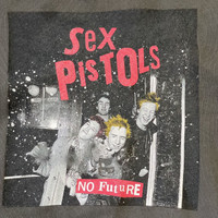 This is an officially licensed item created under the authority of Sex Pistols Residuals ©2024, which manages the band's intellectual property and merchandise rights. The garment features a graphic of the influential English punk rock band The Sex Pistols. The photo is an iconic image of the original lineup, including lead singer Johnny Rotten and bassist Sid Vicious. The distressed, washed-out charcoal grey color and oversized fit are characteristic of contemporary punk-inspired streetwear design. • Design Details: Features the band's logo in the classic ransom-note style font, with the phrase "NO FUTURE" at the bottom of the central photo graphic. The dark gray/charcoal fabric has a deliberately faded or washed look. • Fabric and Origin: The care tag indicates the primary material is Cotton (綿 - 100%) with a rib blend of 95% Cotton and 5% Polyurethane (ポリウレタン). The full product code is WWZ1041106A0001, which may point to a specific Japanese or international retailer collaboration, often associated with a higher-end, quality blank. • Condition: New/Excellent (as it is a recent 2024 release). 📏 Size & Measurements The size tag reads Size F (Free Size/One Size), but the actual fit is oversized. This item fits approximately like a Men's Large (L) or a relaxed/oversized Medium (M). Please compare the measurements to a sweatshirt you already own for the best fit.