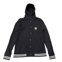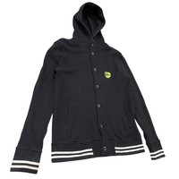 Design Tshirts Store Graniph (often just "graniph") is a popular Japanese fashion brand known for its creative and affordable graphic apparel, primarily T-shirts, but also hoodies, jackets, and accessories. • Collaborations: Graniph is famous for its extensive collaborations, partnering with a wide range of content, including artists, illustrators, classic literature, video games, anime, and major brands like The Beatles. • Unique Designs: Their items are often limited-edition and feature unique, officially licensed designs that are highly sought after by collectors. • The Beatles Collaboration: The piece you have is from a limited-edition collection featuring official The Beatles and Apple Corps Ltd. licensing, confirmed by the 2015 copyright tag. The design focuses on the iconic Apple Records logo. 📝 Product Description Vintage Graniph x The Beatles Apple Corps Varsity Style Snap-Button Hoodie This is a rare and highly collectible piece from the limited 2015 collaboration between the Japanese brand Design Tshirts Store Graniph and The Beatles / Apple Corps Ltd. • Style: A comfortable cotton-blend hoodie with the design elements of a classic varsity jacket, featuring snap-button closures and striped ribbed cuffs/hem. • Details: • Features the iconic Apple Records logo embroidered in a vibrant lime green on the left chest. • All snap buttons are custom-engraved with "THE BEATLES" and "graniph" (image provided). • Hoodie style with a high-neck snap closure for extra warmth and detail. • Ribbed cuffs and hem feature contrasting white stripe details. • Rarity: This is a limited-run Japanese-exclusive item, making it a great find for any Beatles fan or collector of Graniph collaborations. • Condition: Excellent vintage condition. Please review all photos for complete details. • Material: • Body: 100% Cotton • Rib: 84% Cotton, 14% Polyester, 2% Polyurethane • Care: Machine wash cold, do not tumble dry, do not iron on print/embroidery. Measurements P21’inc L27’ S18.5’ SL26.5’