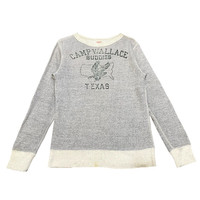 Designer Details (From the tags) • Brand: DENIM DUNGAREE • Manufacturer/Company: FITH CO. LTD. • Style/Collection Note: "PREMIUM JERSEY" WARM UP • Country of Origin: Made in China • Product No.: NO. 757418 Product Description Vintage DENIM DUNGAREE "CAMP WALLACE BUDDIES TEXAS" Sweatshirt This is a fantastic vintage grey marl pullover sweatshirt from the popular Japanese brand DENIM DUNGAREE (a line by FITH CO. LTD.). It features a classic, slightly distressed graphic print inspired by Americana, with the text "CAMP WALLACE BUDDIES TEXAS" and an image of an eagle over the outline of the state of Texas. The shirt is made from a comfortable and breathable 100% Cotton "PREMIUM JERSEY" fabric, perfect for layering or casual wear. It has a contrasting off-white crew neck and ribbed cuffs/hem. Condition: Excellent vintage condition with a desirable fade and minor signs of wear consistent with age, which adds to its authentic retro character. (Note: Please examine all photos closely as they are part of the description.) Sizing: The tag size is LARGE (150cm), which often corresponds to a youth or small adult size in the Japanese market. Please refer to the precise measurements below for the best fit. Materials & Care: • 100% Cotton • Machine wash with non-fluorescent detergent. • Do not keep wet more than several hours. • Do not tumble dry. MEASUREMENTS (Approximate Lay-Flat Inches): (Based on your provided measurements)