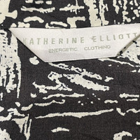 the aesthetic, this is a vintage Japanese-made shirt by Katherine Elliott. The bold, abstract monochromatic print gives it a very modern, "art-hoe" or avant-garde streetwear vibe. About the Designer: Katherine Elliott Katherine Elliott (often subtitled "Energetic Clothing") is a vintage Japanese label known for its focus on unique textile patterns and artistic prints. Pieces from this brand typically reflect the Japanese "DC Brand" boom of the late 80s and 90s, emphasizing high-quality fabrication (like this rayon-linen blend) and relaxed, structured silhouettes. Their designs often lean into bold, graphic aesthetics that remain timelessly stylish. Product Description Vintage Katherine Elliott Abstract Graphic Shirt Elevate your wardrobe with this stunning vintage button-down from Japanese label Katherine Elliott. Featuring a high-contrast, monochromatic abstract print that resembles brushstrokes or architectural sketches, this shirt is a wearable piece of art. Crafted in Japan from a premium rayon and linen blend, it offers a soft, breathable drape perfect for warm weather or layering. Product Details • Brand: Katherine Elliott (Energetic Clothing) • Origin: Made in Japan • Material: 90% Rayon, 10% Linen (High-quality, breathable blend) • Pattern: All-over abstract graphic print in black and off-white • Features: Full button front, classic collar, chest pocket, short sleeves. • Condition: Excellent vintage condition. Size & Measurements • Tagged Size: M (Japan sizing, please refer to flat measurements) • Pit to Pit (P): 22.5" • Length (L): 27.5" • Shoulders (S): 21" • Sleeve Length (SL): 7" SKU : MIX46
