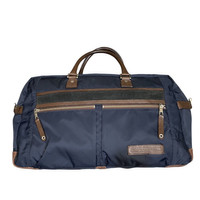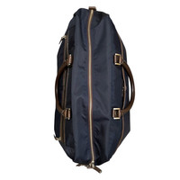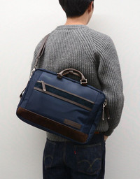 This is a high-quality Japanese-made bag, likely a duffel bag, Boston bag, or 2-way briefcase from the premium master-piece line (MSPC PRODUCT). It features a dark navy nylon shell for a light and durable body, contrasted with rich brown cow leather for the handles and trim. It includes multiple external zippered compartments and a fully lined interior (brown/dark gray) with internal organization pockets, all secured with brass-tone zippers. The design is a sophisticated blend of technical performance and classic business/travel aesthetics. Size : Height 12inch Width : 20inch Depth : 7.5inch