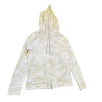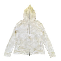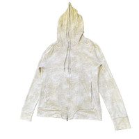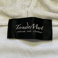 About the Designer Tornado Mart is a Japanese apparel brand established in 1996, known for its distinctive and sharp aesthetic, often described as an elegant rock style. The brand, under the company SPIC International Co., Ltd. (株式会社 スピックインターナショナル), is celebrated for its commitment to unique silhouettes and high-quality materials, creating items with a unique presence. They are particularly recognized by vintage collectors for their avant-garde designs, such as flared jeans and intricately styled jackets/hoodies like this one. Their brand slogan is "refined real clothes." Description This is a striking and unique vintage full-zip hoodie from the Japanese brand Tornado Mart. It features a high, architectural neck when zipped up, giving it a distinctive silhouette characteristic of the brand's elegant rock style. The fabric has a light cream/pale beige and white "marble" or faded wash pattern, adding texture and depth. • Brand: Tornado Mart ("refined real clothes") • Style: Full-zip hooded jacket with a dramatic high-neck collar. • Design Details: • Unique marble/faded wash print. • Prominent high-neck hood design. • Quality YKK zipper. • Hand pockets on the front. • Color: Pale Beige/Cream and White (Marble/Faded Wash) • Material Composition: 63% Polyester, 34% Cotton, 3% Polyurethane (offering a comfortable stretch). • Size Tag: L (Large) • Origin: Made in China (as per tag, under the Japanese company's direction). This is a fantastic piece for anyone who appreciates avant-garde, Japanese street style or distinctive outerwear. Size : Please note that vintage and Japanese sizing can vary. The garment's tagged size is Large (L). • P2P (Pit-to-Pit): 20 inches • L (Length): 25 inches (from top of shoulder to hem) • SL (Sleeve Length): 28.5 inches (from shoulder seam to cuff) SKU : MIX44