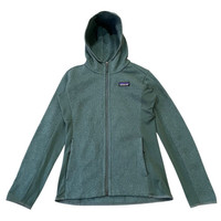 About the Designer (Patagonia) Patagonia is a legendary California-based outdoor brand founded by Yvon Chouinard in 1973. Renowned for its commitment to environmental activism and sustainable manufacturing, the brand pioneered the use of recycled materials in technical apparel. This specific "Performance" version of the iconic Better Sweater features side panels for increased mobility and breathability, blending the aesthetic of a knit sweater with the functionality of a technical fleece. Description Product Overview: Stay warm and eco-conscious with this authentic Women’s Patagonia Better Sweater Performance Hoody. This hybrid jacket combines the classic sweater-knit aesthetic with Polartec® Power Stretch® side panels for a contoured, athletic fit that moves with you. Condition: Excellent pre-owned condition. Color: Heathered Sage Green / Seafoam Size: Small (S) Fabric: 100% Recycled Polyester Key Features: • Full-zip front with a high-neck hood for warmth. • Sweater-knit face with a soft fleece interior. • Zippered handwarmer pockets. • Lightweight, moisture-wicking stretch panels under the arms and on the sides. • Fair Trade Certified™ sewn. Measurements (Flat Lay): • Pit to Pit (P): 19.5" • Length Front (L): 24.5" • Length Back: 26.5" • Shoulder to Shoulder (S): 16" • Sleeve Length (SL): 24.5" SKU : MIX44