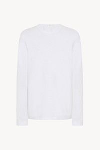 Relaxed long-sleeved top in textured cotton jersey with ribbed crewneck and signature center back detail. Spun from pure cotton slub yarn, the fabric has a distinctive uneven texture with a soft, organic hand and rich, tactile finish. More information - 100% Cotton - Made in Italy - Style: 10450K692WHT