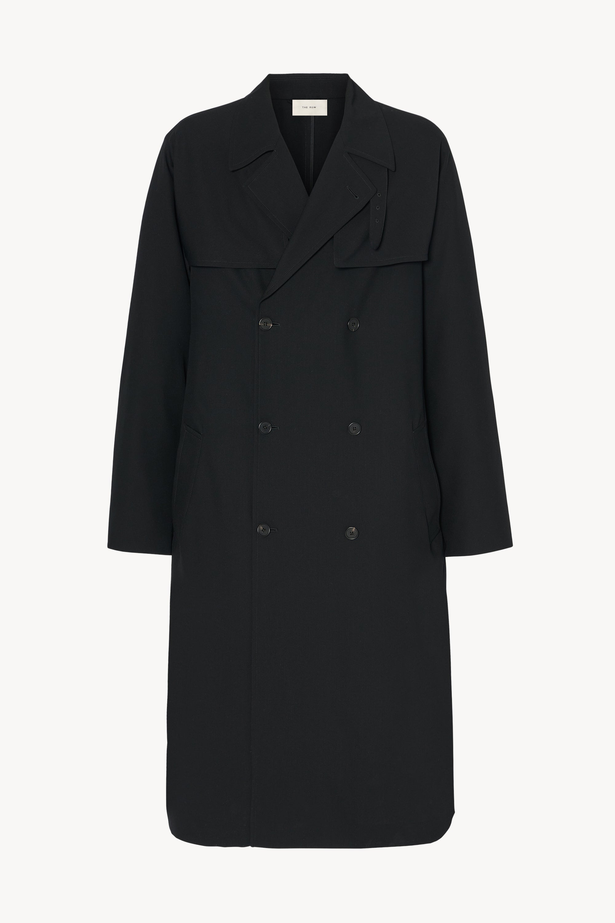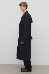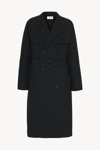 Double-breasted trench coat in smooth virgin wool gabardine with front and back storm flaps, removable buckle belt, and front button closure. More information - 100% Wool - Lined in 45% Cashmere, 55% Silk; 100% Silk - Made in Italy - Style: 1091W4060BLK