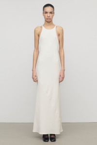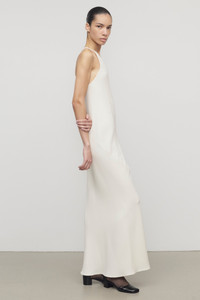 Ankle-length bias-cut dress in smooth heavyweight silk with fitted silhouette and curved, shallow neckline. More information - 100% Silk - Lined in 59% Silk, 33% Polyamide, 8% Elastane - Made in United States - Style: 10190W2214WHT