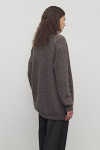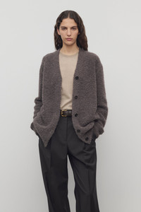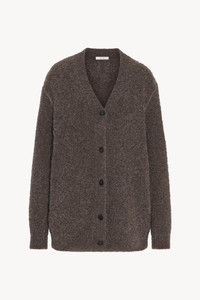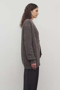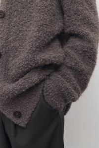 Oversized v-neck cardigan in textured alpaca and cashmere boucle with topstitched armholes, front button closure, and ribbed cuffs and hem. More information - 48% Cashmere, 32% Alpaca, 20% Silk - Made in Italy - Style: 10093Y957TAU