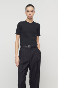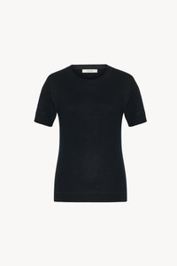 Short-sleeved crewneck t-shirt in ultrafine cashmere jersey with slim fit, covered stitch detailing, and ribbed neckline, cuffs, and hem. More information - 100% Cashmere - Made in Italy - Style: 10025Y212BLK