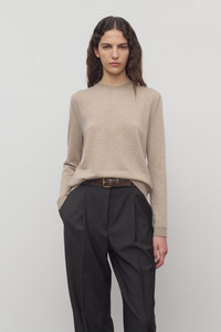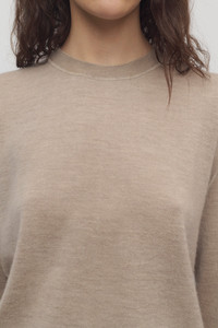Long-sleeved crewneck top in ultrafine cashmere jersey with boxy fit, covered stitch detailing, and ribbed neckline, cuffs, and hem. More information - 100% Cashmere - Made in Italy - Style: 10026Y212BEL