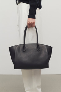 Softly structured tote bag in polished saddle leather with tubular handles and gusseted side panels. More information - 12 x 15.5 x 8.28 in. - Handle: 6.89 in. drop - Interior pocket with zipper closure - 100% Calfskin Leather - Lined in 100% Cotton - Made in France - Style: W1802L72BAS