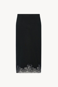 Calf-length pencil skirt in fluid silk with ribbed waistline and lace embroidery around hem. More information - 100% Silk - Made in Italy - Style: 10570Y475BLK