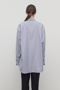Classic button-up shirt in Japanese striped poplin with front patch pocket, elongated cuffs, and exposed front placket with mother-of-pearl buttons. More information - 100% Cotton - Made in Italy - Style: 10204W4267WBL