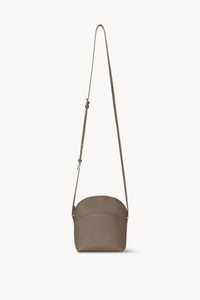 Curved crossbody bag in textured calfskin leather with exterior slot, adjustable shoulder strap, and zipper closure. The strap blends seamlessly into the body of the bag, forming the front pocket in a continuous, organic line. Minimally finished, the natural grain surface is left intact, giving the leather a supple hand and refined texture that develops character over time. More information - 6 x 7 x 2.8 in. - Antique silver hardware finishing - 100% Calfskin Leather - Lined in 100% Lambskin Leather - Made in Italy - Style: W1911L129SMKTA