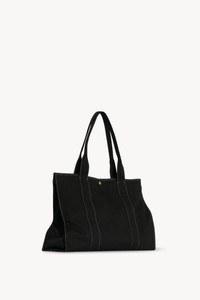 Rectangular shoulder bag in soft cotton canvas with flat base, contrast topstitching, and metal snap closure. More information - 17.3 x 13 x 6.3 in. - Antique gold hardware finishing - 100% Cotton - Lined in 100% Cotton - Made in Italy - Style: W1927W188BAG