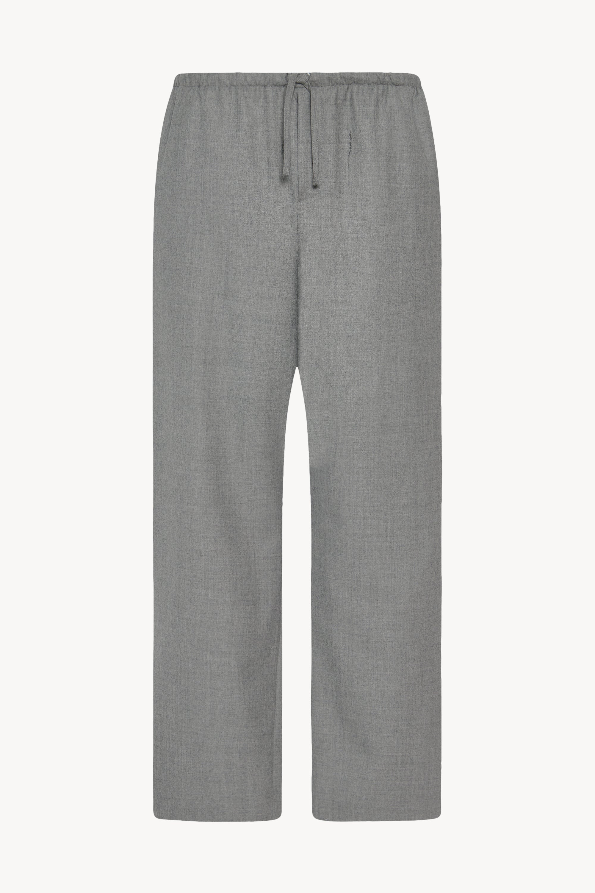 Relaxed pull-on pant in virgin wool flannel with wide, straight leg, elasticated drawstring waist, and side seam pockets. More information - 100% Wool - Lined in 100% Cotton - Made in Italy - Style: 990W4084GRY