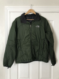 Super nice TNF puffer jacket in a forest green. Very cozy and warm. Has two zipper pockets and some nice details. Hit me up with any questions.