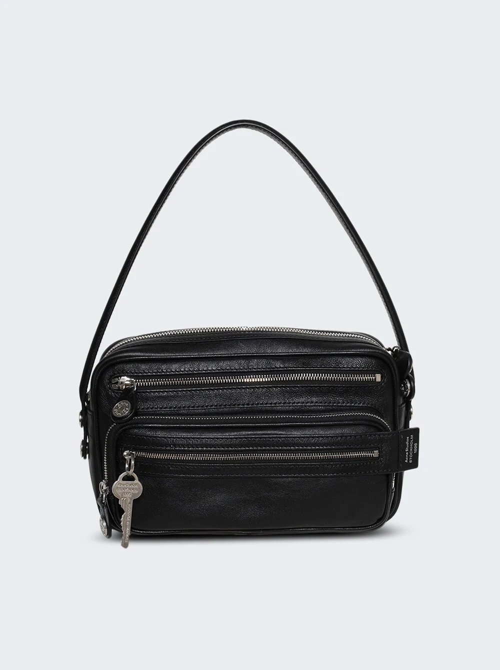 Details - Drop handle - Adjustable crossbody strap - Acne Studios logo embossed - Silver-toned zip compartments - Denim-style button - Branded key charm - Care according to label - Material: Leather Size Information: Vendor Color Code: Brand Style: C10240 Designer/Brand: ACNE STUDIOS