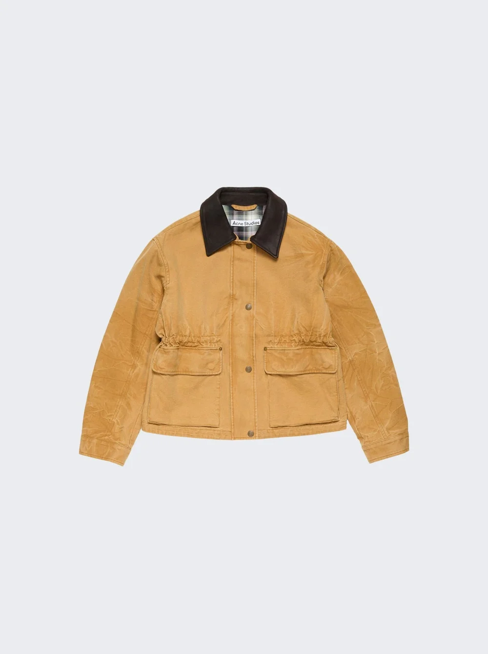 Details - Sturdy canvas jacket - Relaxed fit, hip length - Leather collar - Patch pockets with flaps - Drawstring waist - Invisible snap-button closure - Material: 100% Cotton; Lining: 100% Viscose; Collar: 100% Calf leather Vendor Color Code: Brand Style: A90720 Designer/Brand: ACNE STUDIOS