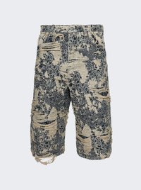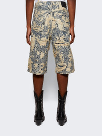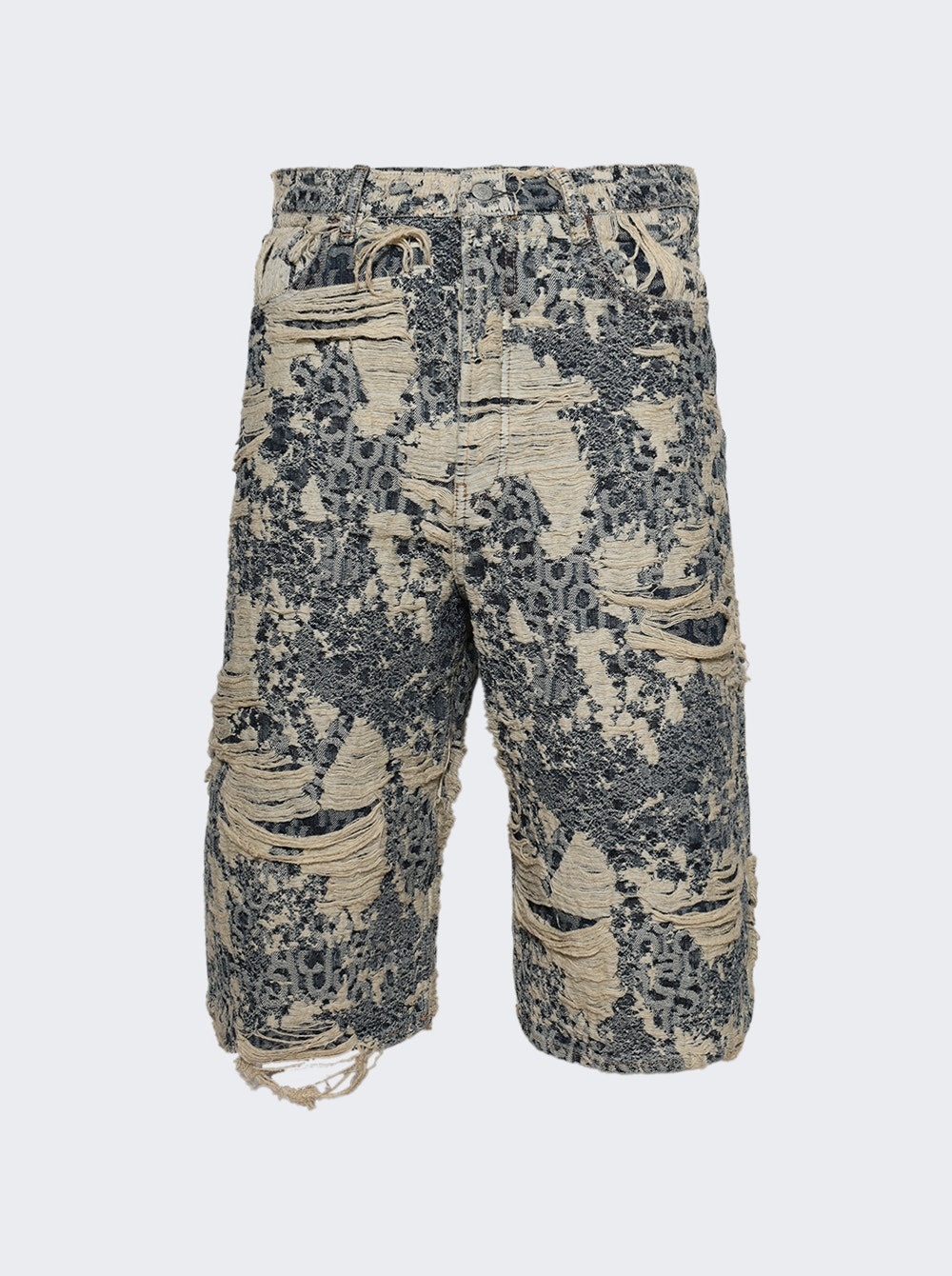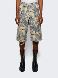 Distressed Monogram Denim Shorts Mid Blue