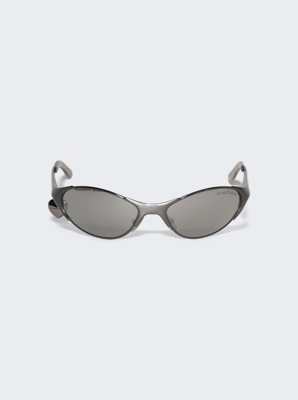 Details - Sleek oval shield sunglasses with a heart charm - Silver-toned stainless steel frame - Charm with Acne Studios logo engraved - Height of the temple: 125 mm - Width of the lenses: 60 mm - Height of the lenses: 34.5 mm - Material: Lens: 100% Nylon; Frame: - Monel, 50% Niclafor Brand Style: C30060 Designer/Brand: ACNE STUDIOS