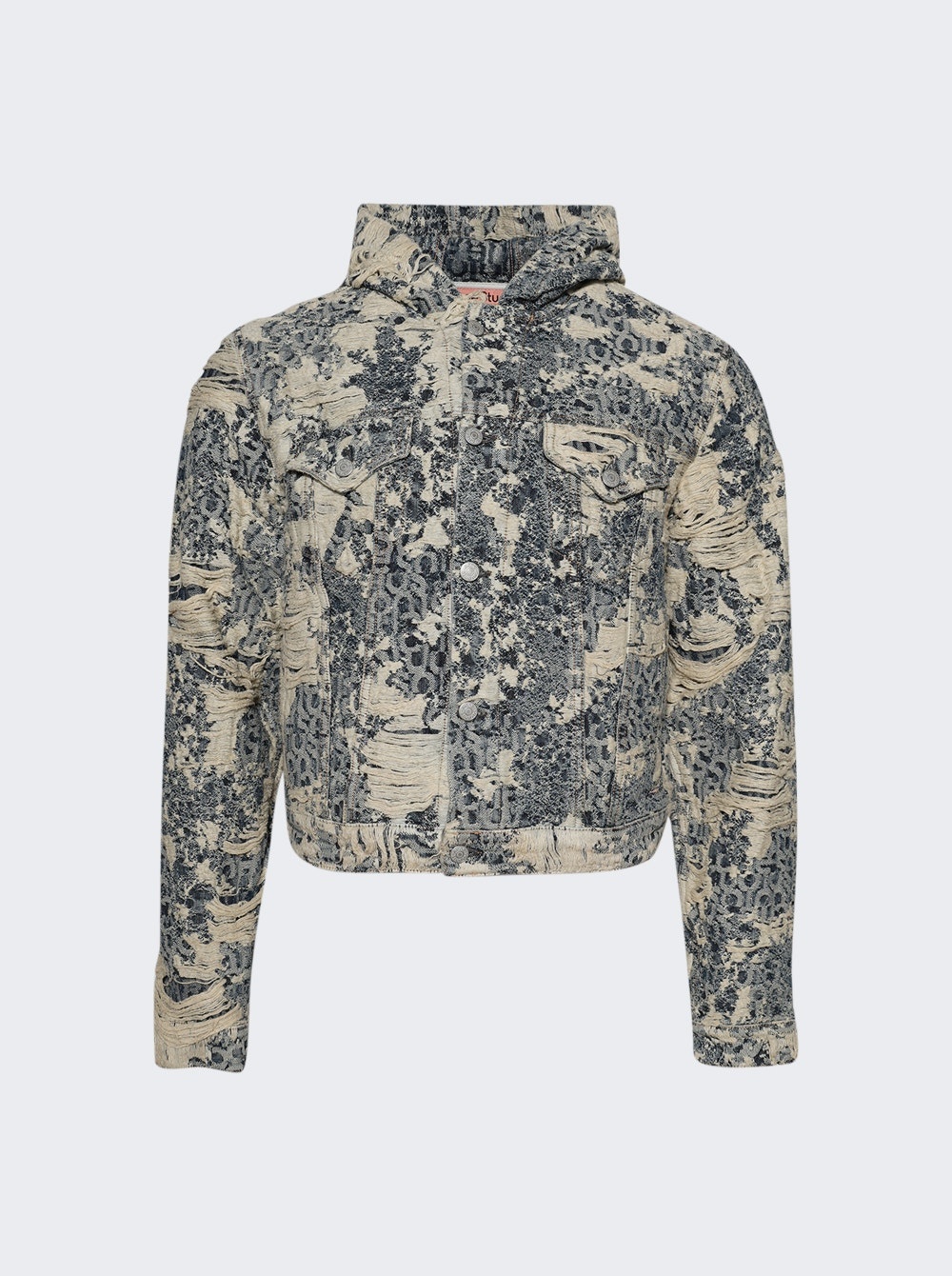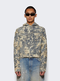 Orayo U Denim Distressed Monogram Jacket Mid Blue