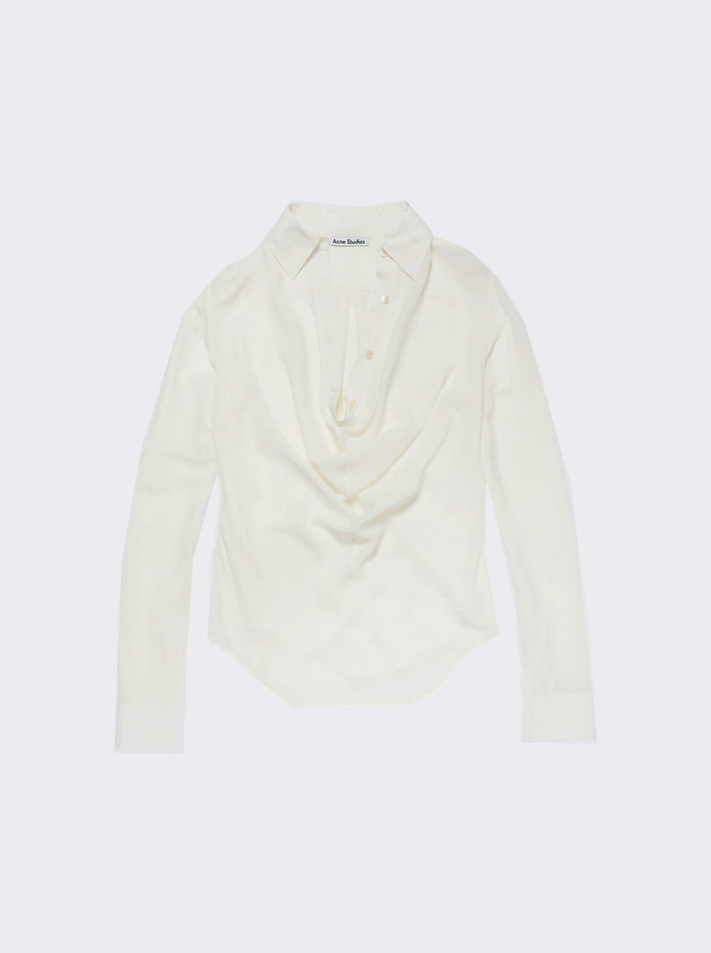 Details - Long sleeve blouse in lightweight, fluid silk - Cowl neckline - Button-up detailing - Snaps at the yoke to secure to an undergarment - Regular fit, below-hop length - Material: 100% Silk Size Information: Vendor Color Code: Brand Style: AC0752 Designer/Brand: ACNE STUDIOS