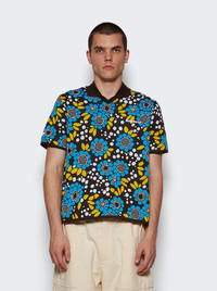 X Wales Bonner Knit Polo Shirt Blue Floral