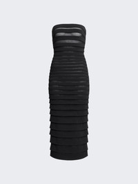 Details - Fitted silhouette - Midi length - Strapless - Sleeveless - Concealed zip closure - 3D stripe mesh knit - Care according to label - Material: Viscose, Polyester, Nylon, Polyamide - Model is 5'9"/175cm and is wearing a size FR36 Brand Style: AA9R2555K009A Designer/Brand: ALAIA