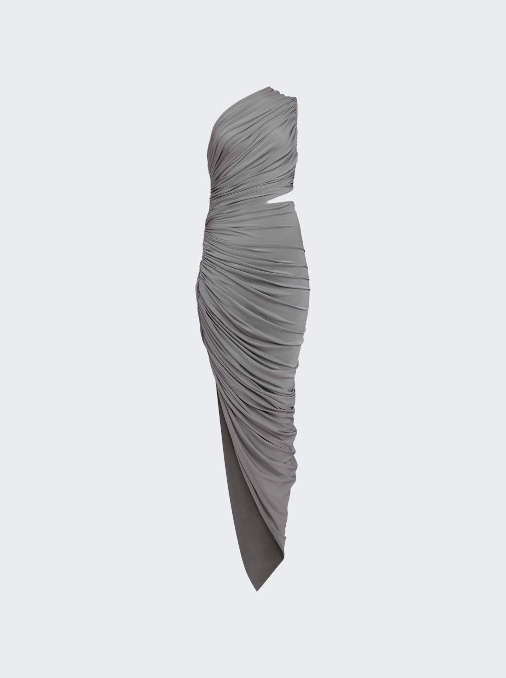 Details - Slim fit - Cut out detailing - Midi length hem - Ruching design - One shoulder neckline - Care according to label - Material: 96% Viscose, 4% Elastane Size Information: Vendor Color Code: Brand Style: AA9R1330J050B Designer/Brand: ALAIA