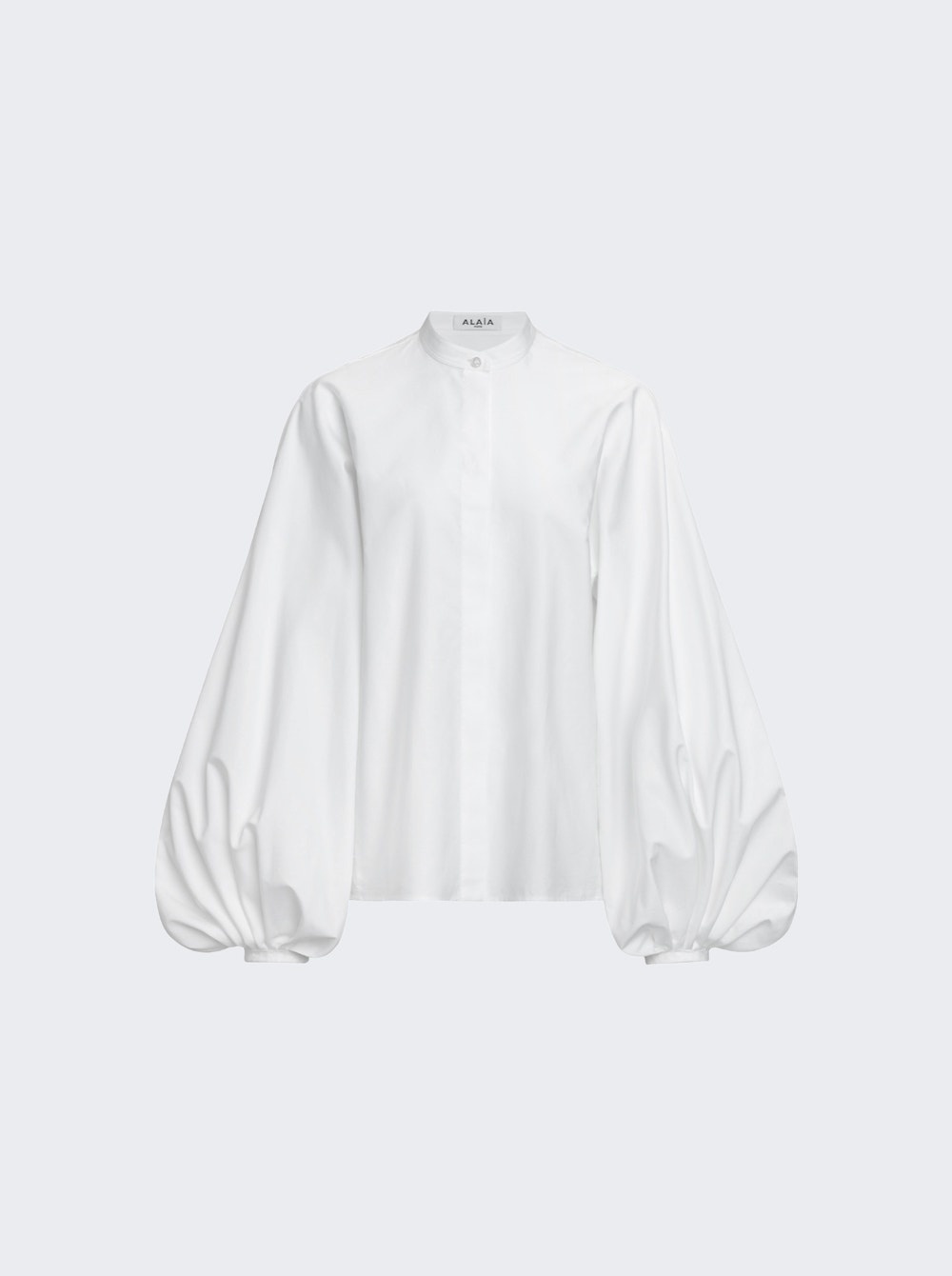 Details - Regular fit - Ballon sleeves - Mandarin collar - Concealed button closure - Straight hem - Care according to label - Material: Cotton Size Information: Vendor Color Code: Brand Style: AA9C0977T611A000 Designer/Brand: ALAIA
