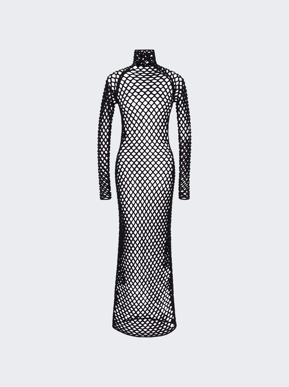 Details - Sheer knitted cage - Tube silhouette - Long sleeves - High neck - Large 3D mesh with internal layer of lurex - Knitted in a felted wool Dimensions: Model is 5'9"/175cm and is wearing a size FR36 Composition: 40% viscose, 32% wool, 18% metallized polyester, 9% polyamide, 1% elastane Care: care according to label Brand Style: AA9R23804M821 Designer/Brand: ALAÏA