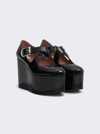 Details - Round toe - Wedge pumps - Inspired by the iconic criss cross ballet flats - 110 mm heel with platform - Cross straps - Patent calfskin leather - Material: Upper: 100% Lambskin, Sole: 100% Rubber - True to size. Listed in FR sizing. Brand Style: AA3E084CK168 Designer/Brand: ALAIA